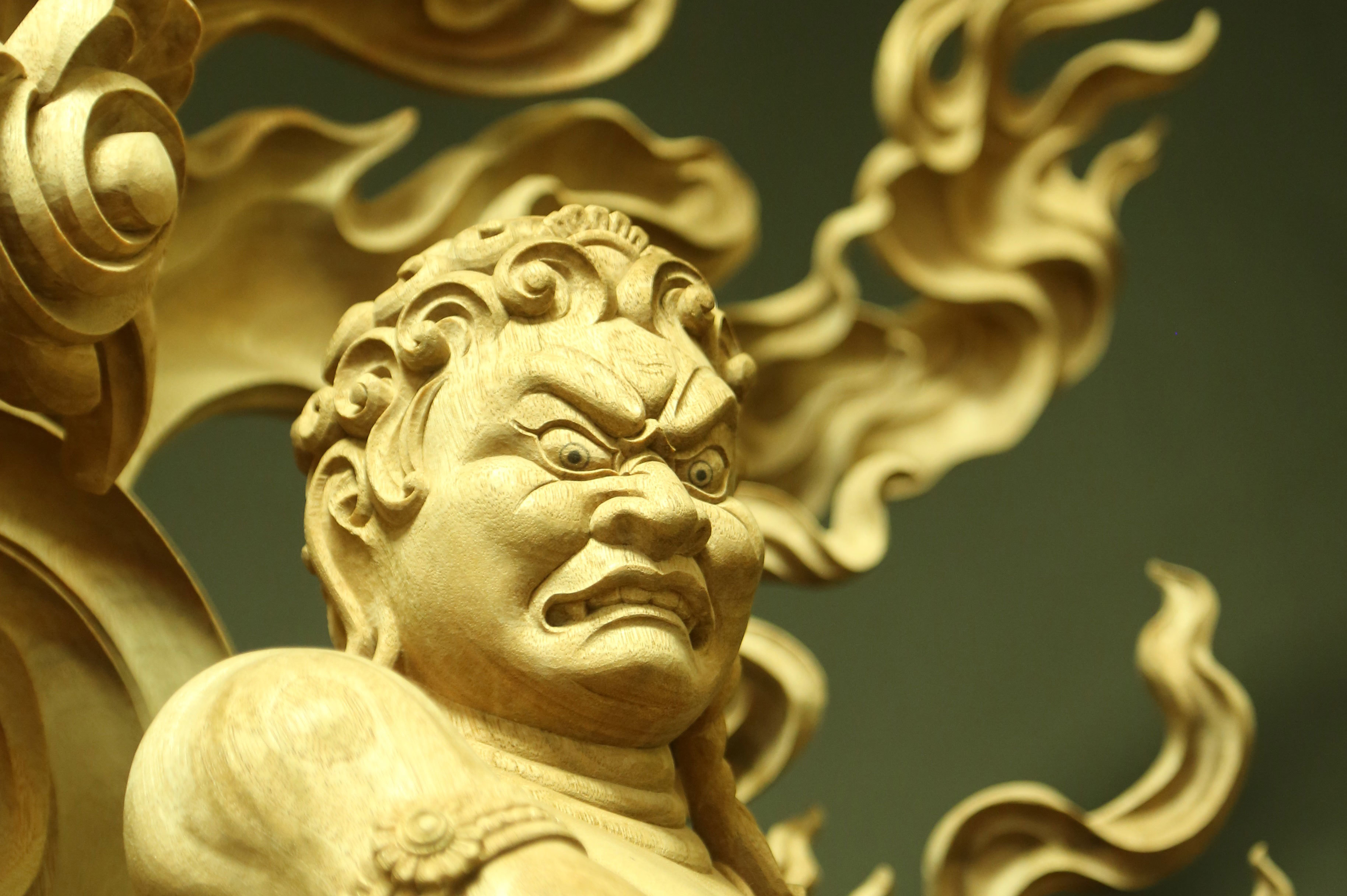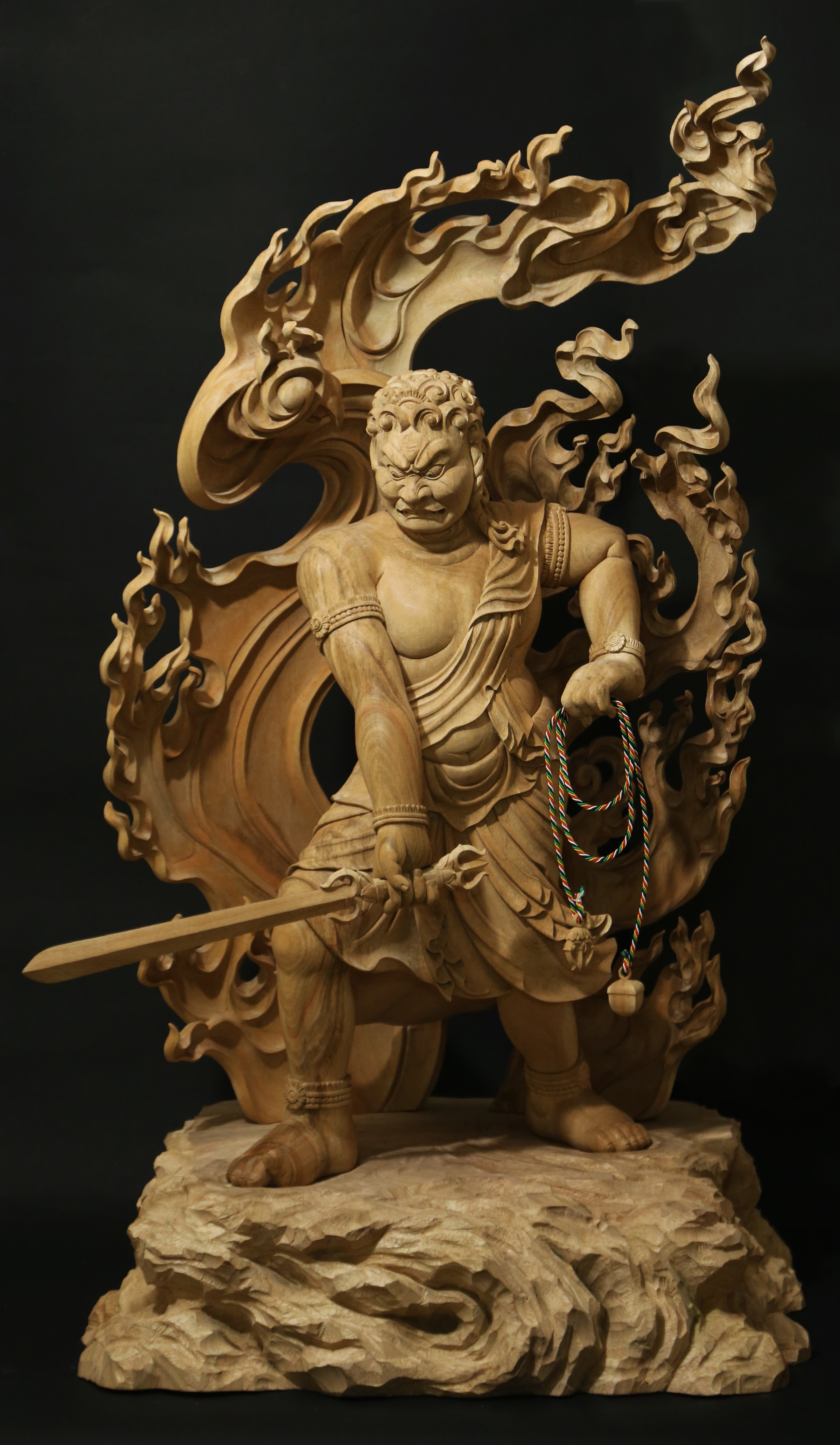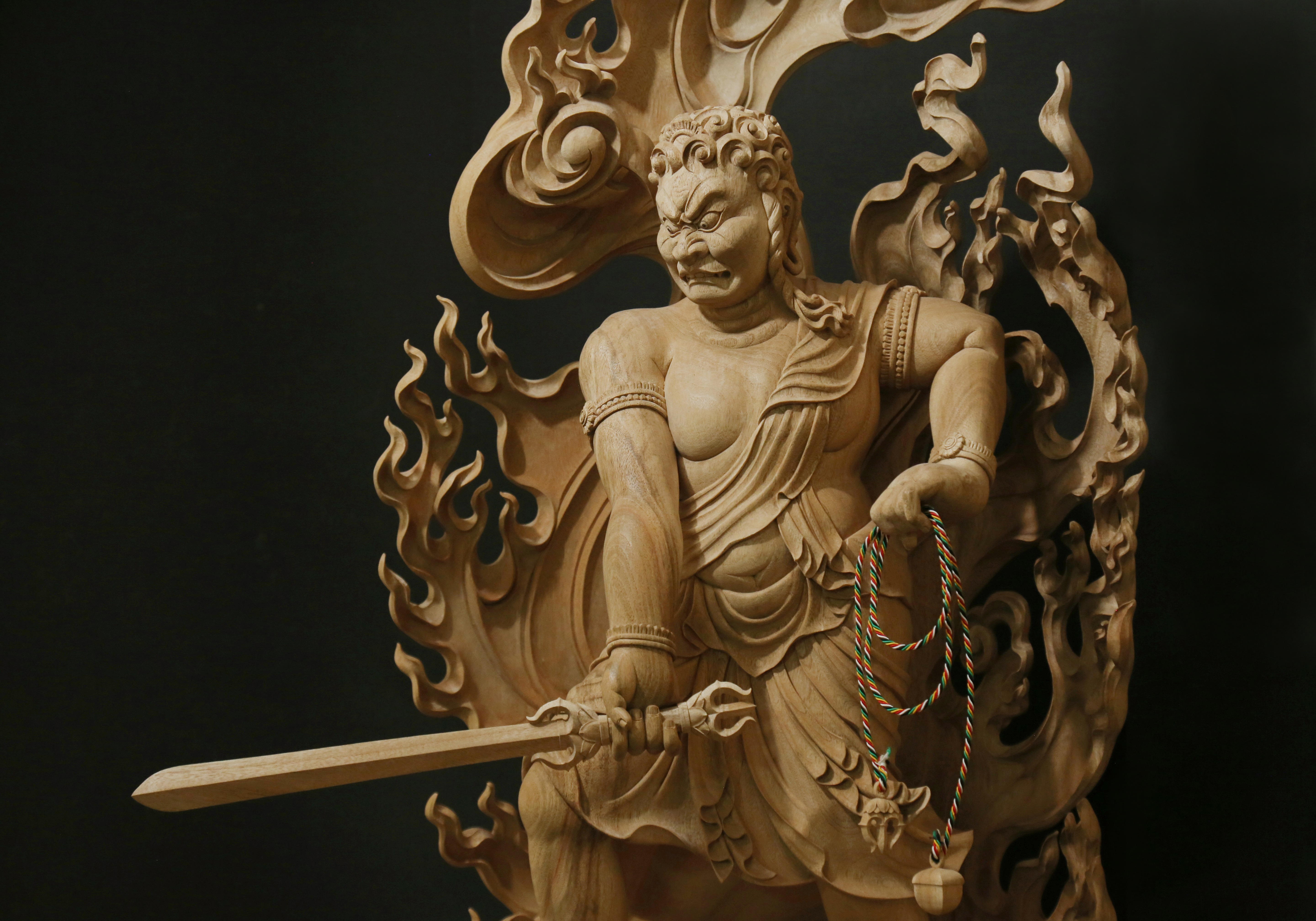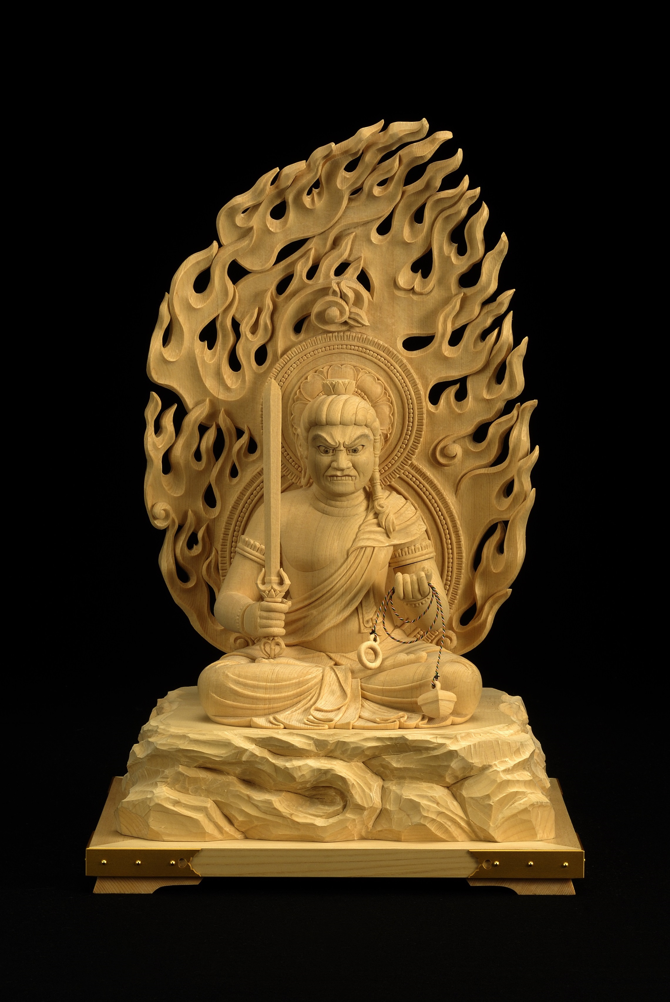 新型コロナウイルスの影響で世界中が大変深刻な状況になり、先の見通しのつかない日々が続いています。その様な中、仏師としてお迎えする仏様があるのではないかと考え、微力ながら一年の歳月をかけて新型コロナウイルスの退散の願いを込めた疫病退散明王像を制作しました。一日でも早く皆様が安心して穏やかに暮らせる日々が訪れることを心より願っております。