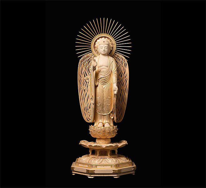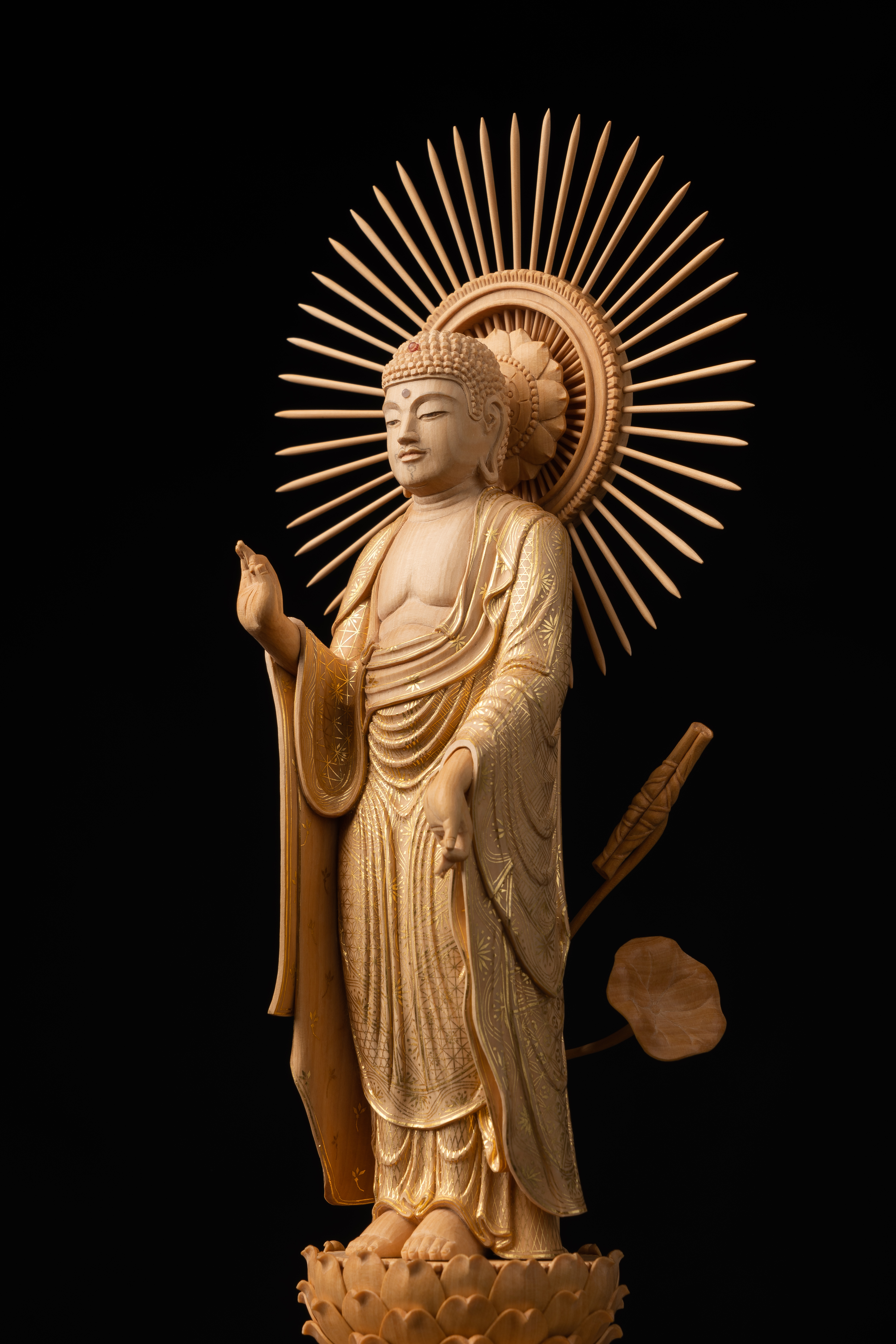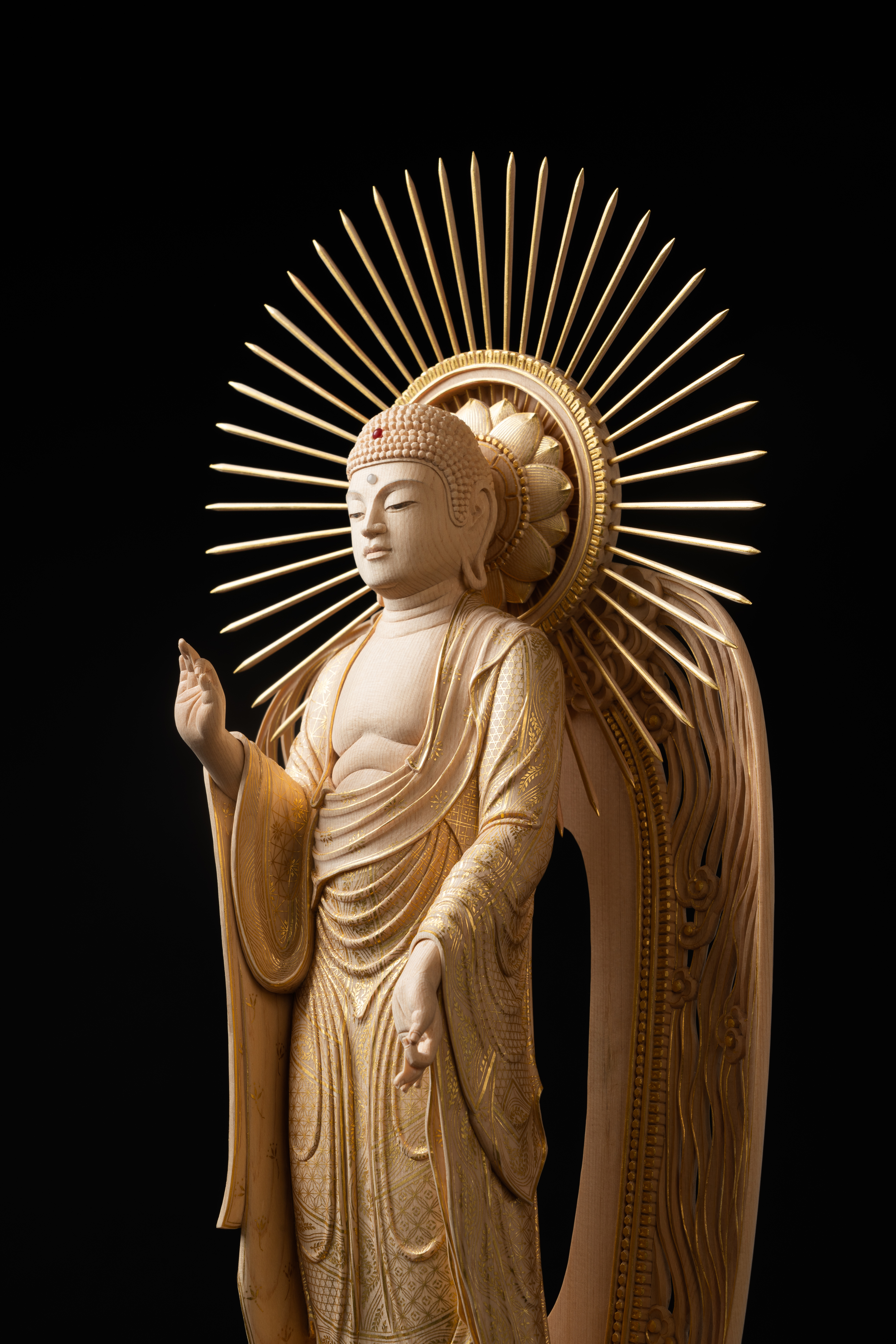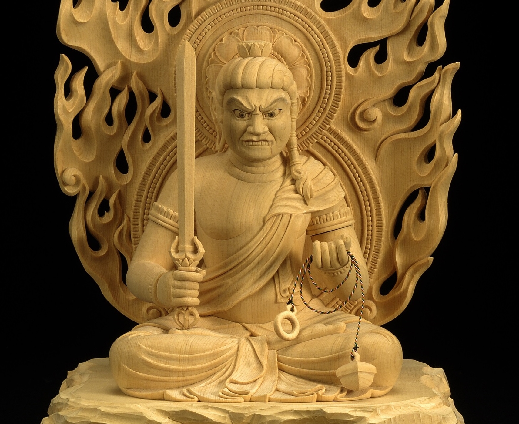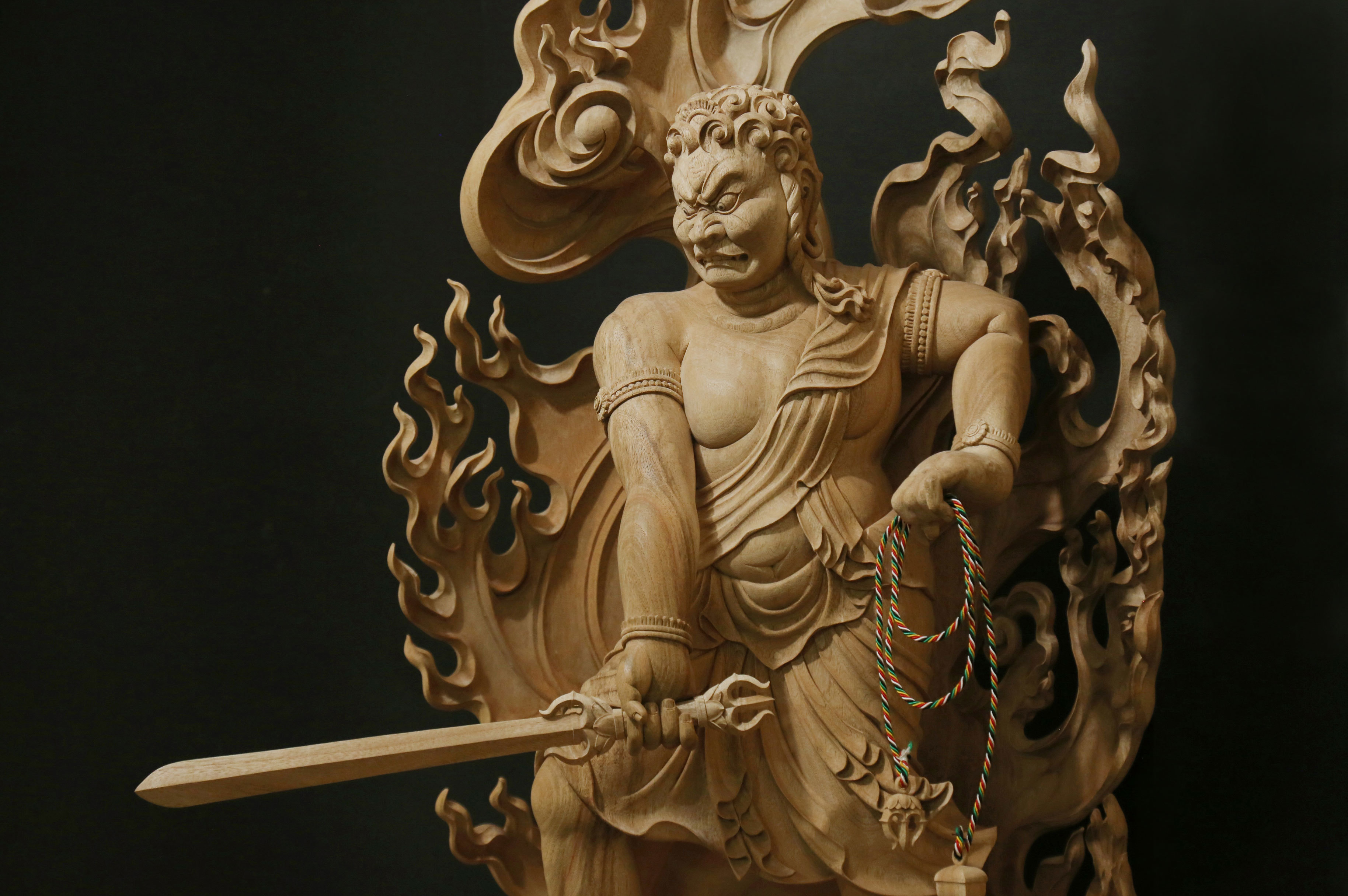 新型コロナウイルスの影響で世界中が大変深刻な状況になり、先の見通しのつかない日々が続いています。その様な中、仏師としてお迎えする仏様があるのではないかと考え、微力ながら一年の歳月をかけて新型コロナウイルスの退散の願いを込めた疫病退散明王像を制作しました。一日でも早く皆様が安心して穏やかに暮らせる日々が訪れることを心より願っております。